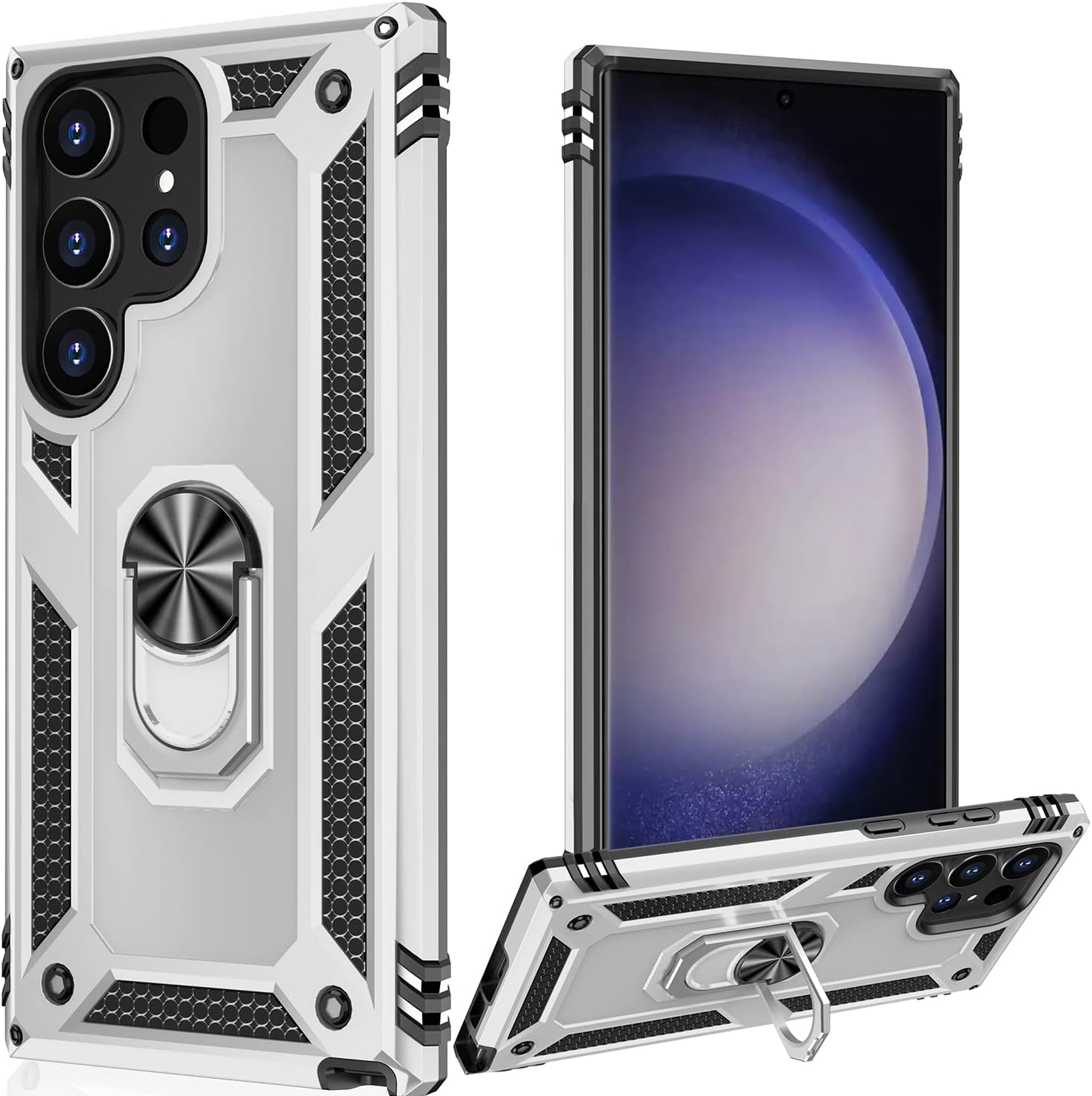 【Ring Holder Design】– Built in 360 degree rotating kickstand can meet your eyes to find a comfortable viewing position.With a ring support,prevent your phone from falling from your hands. Take photos, text, or talk without worrying about dropping your valuable device.